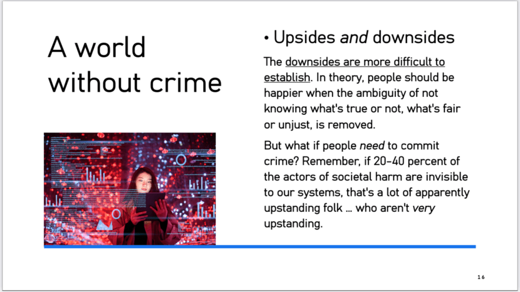 the latter are great at who and when; they’re not fit for purpose — 9/11 showed this clearly — when we’re talking about new kinds of what and how. this, in my view, is because they inevitably inhibit the capacity we otherwise had in pencil & paper days to think profoundly and fearlessly before we showed anything to the outside world. now we simply don’t know who is watching, so not everything we might think even gets thought.