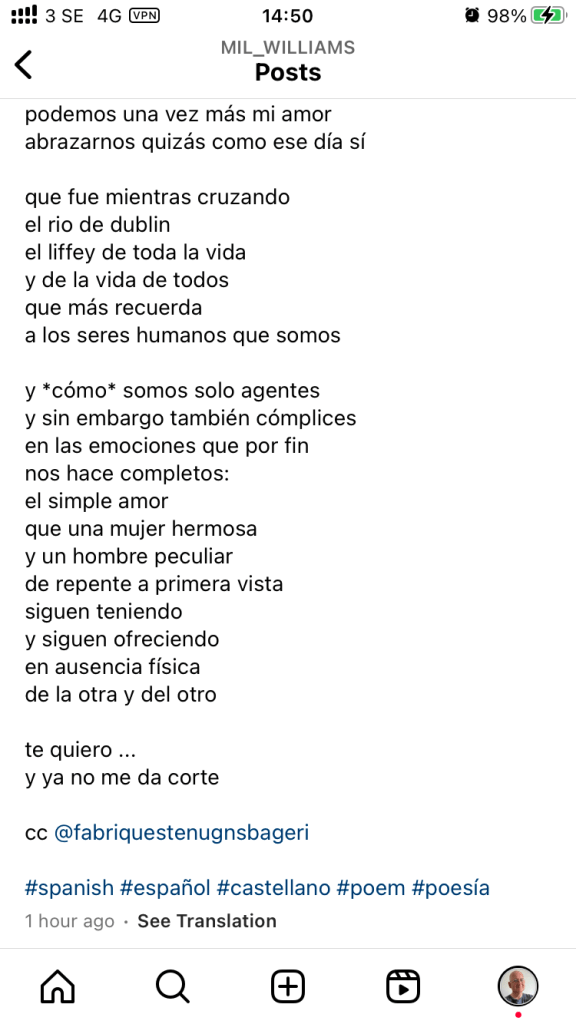 the #poem below was written an hour or so ago. it’s by a foreign user of #castellano who only lived there some sixteen years. but it has some huge merit for me because of what it strives to communicate. and it may have a minimum merit even for #spanish speakers themselves.