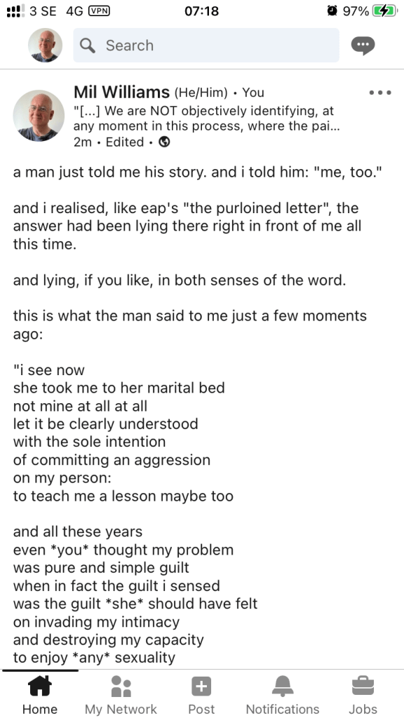 and this is what has taken me nineteen years to understand … but understand i now clearly have … and without your persistence c, none of this myself i’d ever been able to have seen.