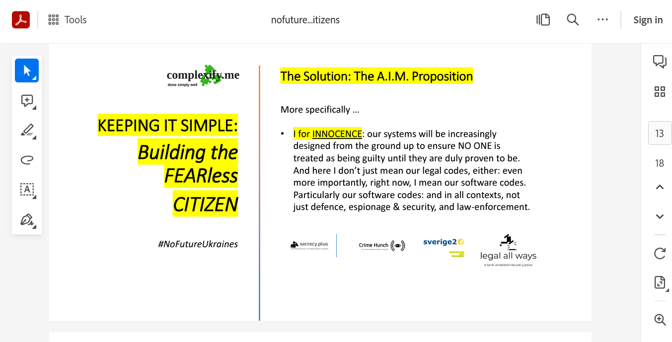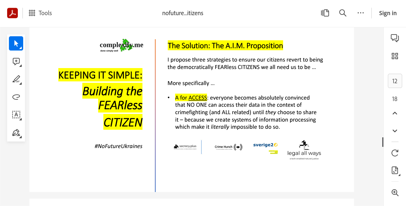 - Who wants in? #NoFutureUkraines (auto-downloads presentation 1 in pdf format) | a proposal for two bootcamps to strategise software and social/legal solutions to the challenges mentioned