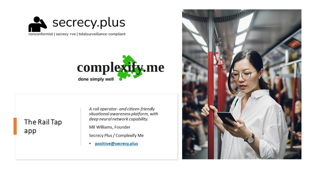 first scoped late 2018-onwards: the version here is an updated, shortened, and rebranded one of the original, formally presented to the British authorities at a competition they ran in 2019 | a situational awareness platform to capture feelings of unease on railway — and potentially other transport — infrastructures: