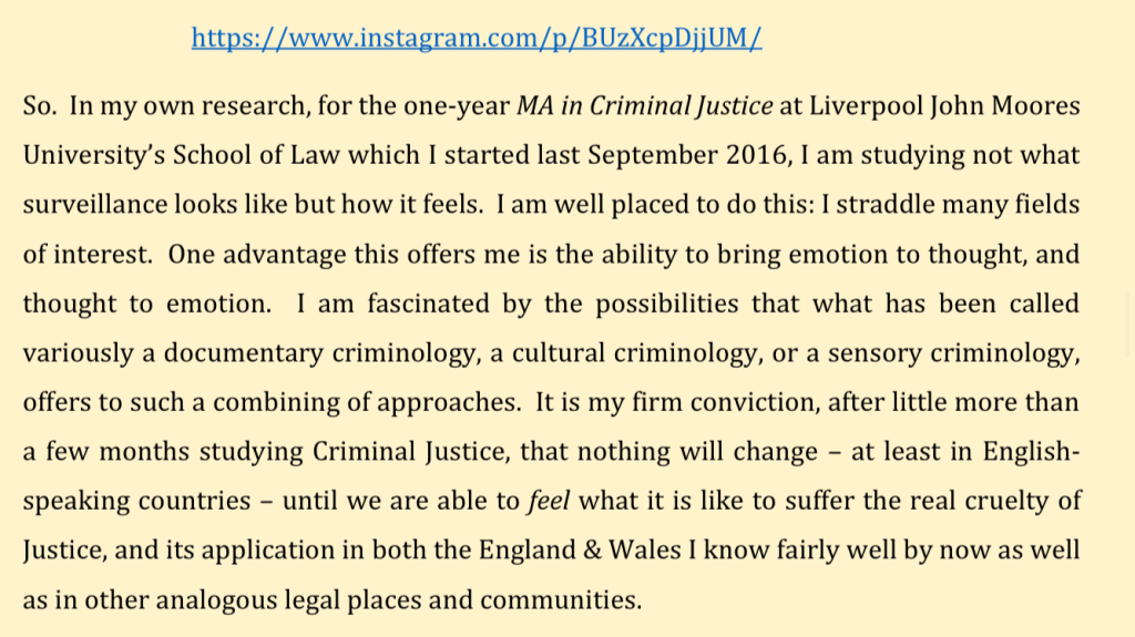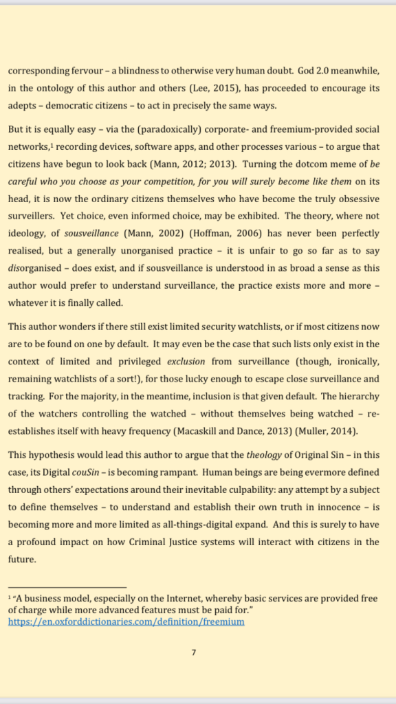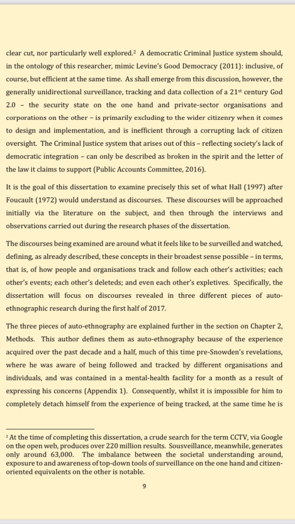 foundational academia (each link auto-downloads its related pdf): the missing case of #sousveillance / #schizophrenality: mental health legislation repurposed for criminal justice ends / #totalsurveillance as secular #originalsin: my master’s dissertation from 2017