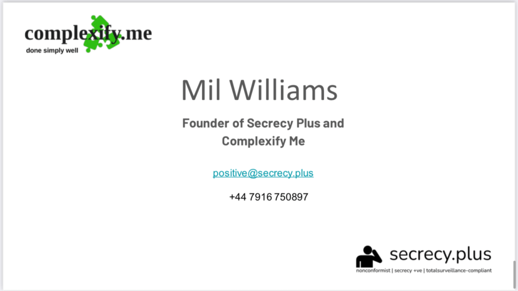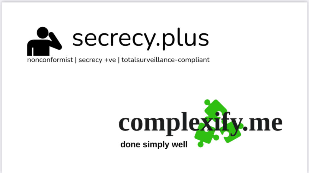videos: security vs safety / truth in the workplace; IP across hierarchies; #secrecypositive #totalsurveillance-compliant architectures; #neurodiverse #complexproblems-solutioning architectures