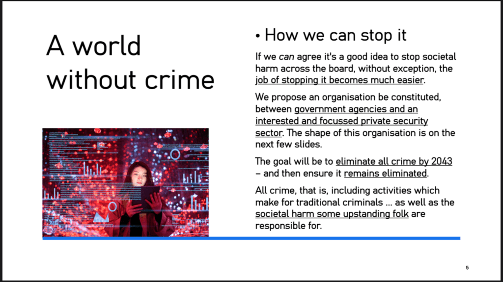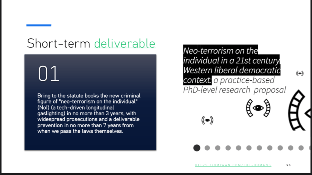 draft objectives: the total elimination in 20 years of all #neoterrorismontheindividual (NoI), #crime, #neocrime, and #zemiology (loopholes)