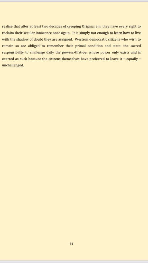 * Footnote: under total surveillance philosophies we are no longer innocent until proven guilty but incessantly, and permanently, considered guilty, whilst never to be proven innocent again.