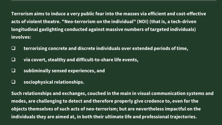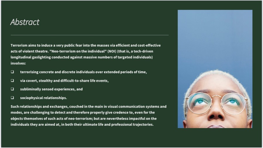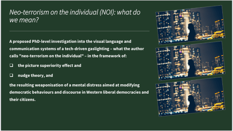 Neo-terrorism on the individual slide-deck | A description of a tech-driven longitudinal #gaslighting committed by #bigtech and related (related means to some extent any and all other sectors of human endeavour) over the years