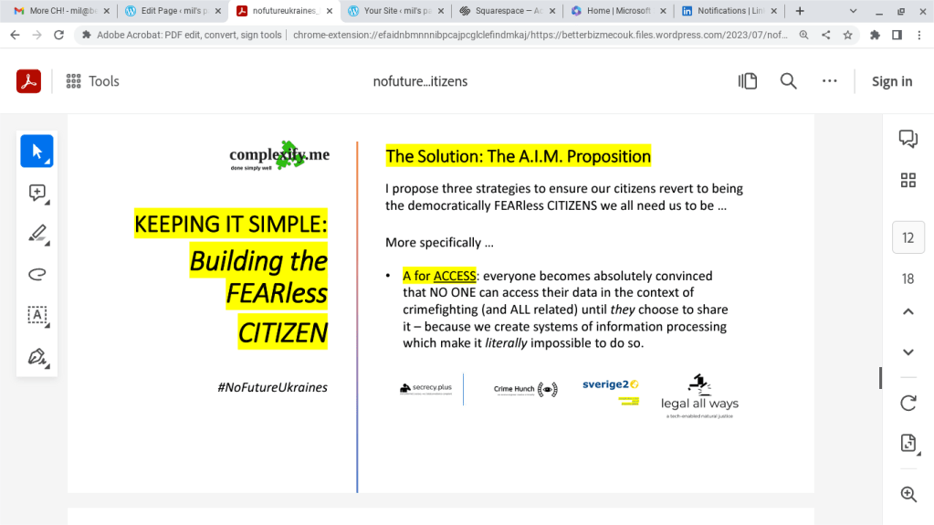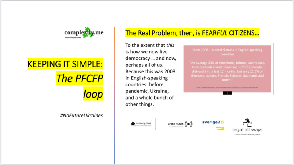 Meantime, here we have my most recent strategy to eliminate the scourge of legal societal harm (that is, loopholes or — more academically speaking — #zemiology): “Building the FEARless CITIZEN”, so that we ensure #NoFutureUkraines …